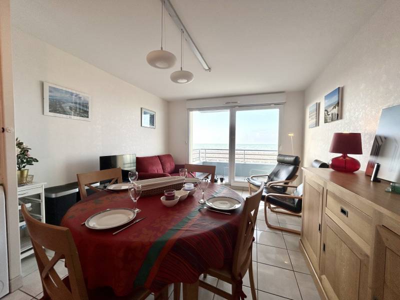 Descriptif: Face à la mer, bel appartement aménagé avec charme, situé au premier étage d'une résidence récente avec ascenseur et comprenant une entrée, une cuisine équipée ouverte sur le séjour (lave-vaisselle/ Lave-linge/micro-ondes/four multifonctions/plaque vitrocéramique/réfrigérateur/cafetière senséo/bouilloire/grille-pain), une pièce de séjour avec espace repas et salon (téléviseur/lecteur dvd) donnant sur un balcon (salon de jardin/transat) avec belle vue sur la plage.