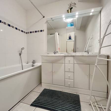 Salle de bains (baignoire/double vasque/sèche-cheveux) et toilettes indépendants.