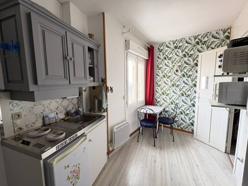 Descriptif: Vous cherchez un pied-à-terre fonctionnel à deux pas de la plage ? Ce studio situé au deuxième étage dans une copropriété calme est fait pour vous !