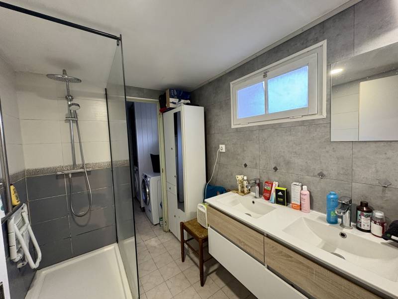 Elle vous offre un séjour spacieux et lumineux avec en continuité une cuisine fonctionnelle. Vous y trouverez également une grande chambre avec son espace dressing puis une autre pièce pouvant servir de coin nuit. Une salle de douches et des wc indépendants sont également présents à ce niveau. Une buanderie apporte un espace pratique pour le rangement et les équipements.