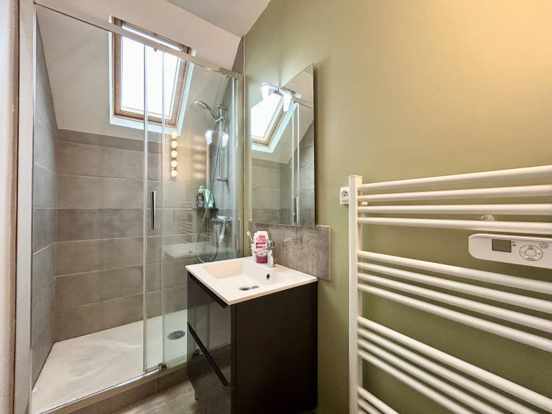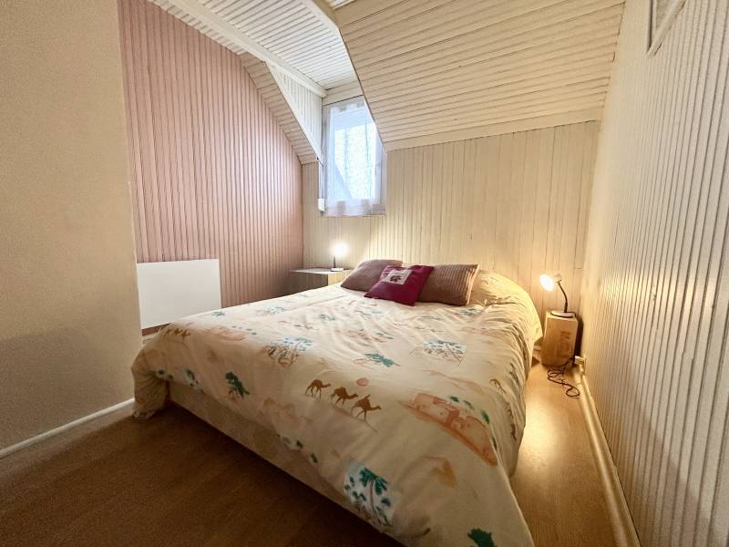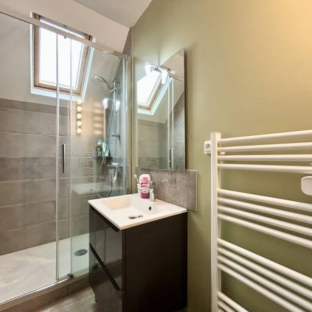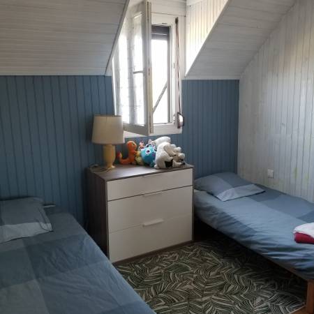 A l'étage, palier desservant trois chambres (deux avec un lit de 140 et une avec deux lits de 90), une salle de douche et des toilettes indépendantes.