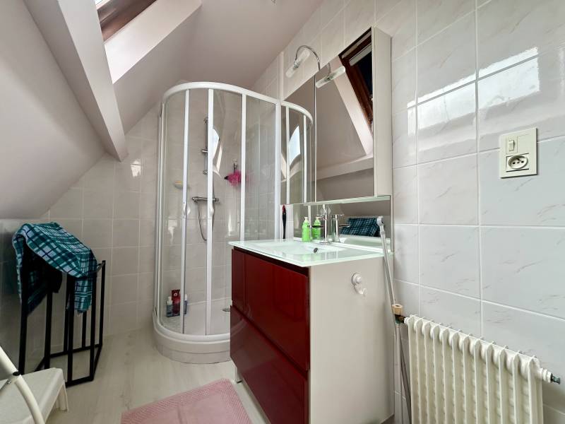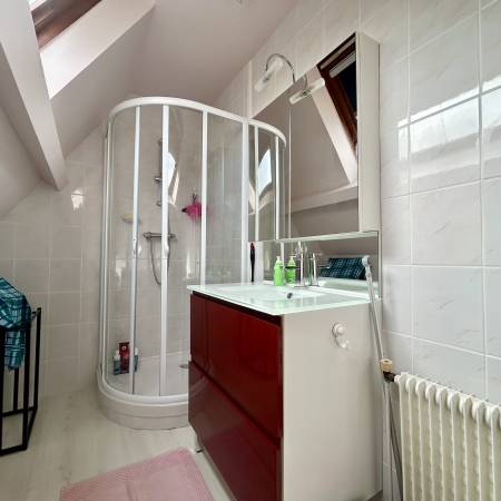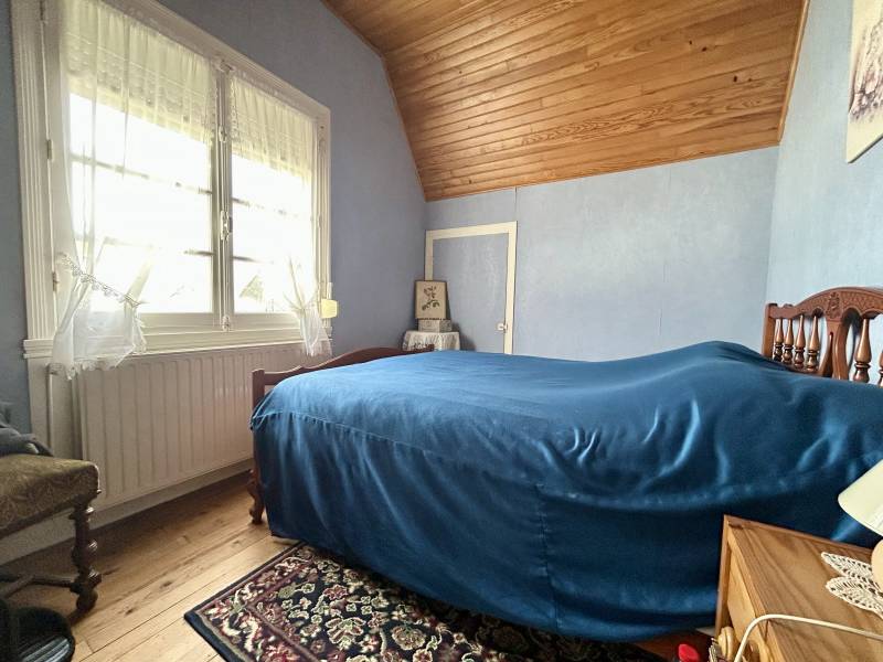 A l'étage, un palier distribue deux chambres, une salle d'eau et un second wc indépendant.