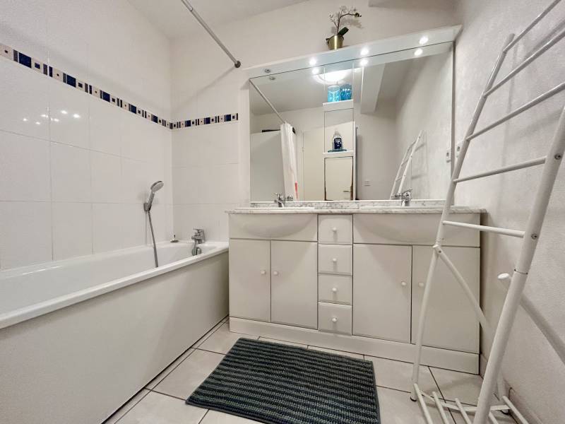 Salle de bains (baignoire/double vasque/sèche-cheveux) et toilettes indépendants.