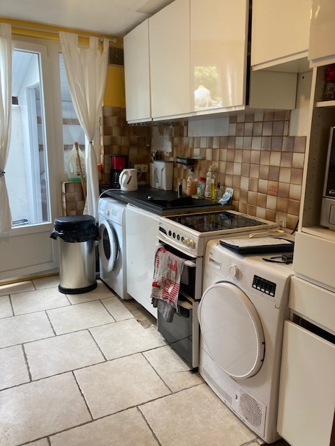 Il vous offre une entrée sur un salon avec coin repas et une cuisine.