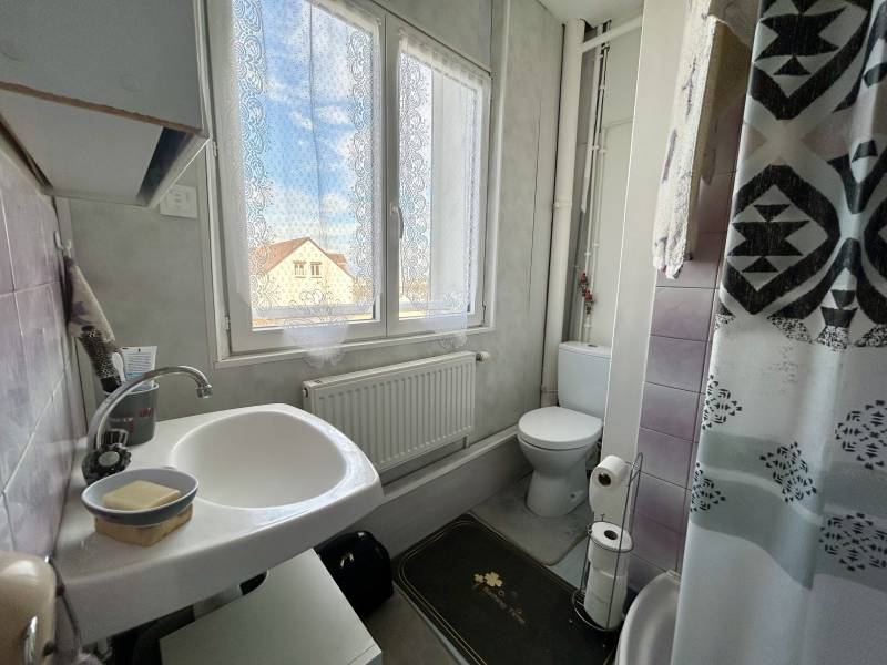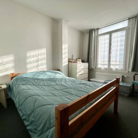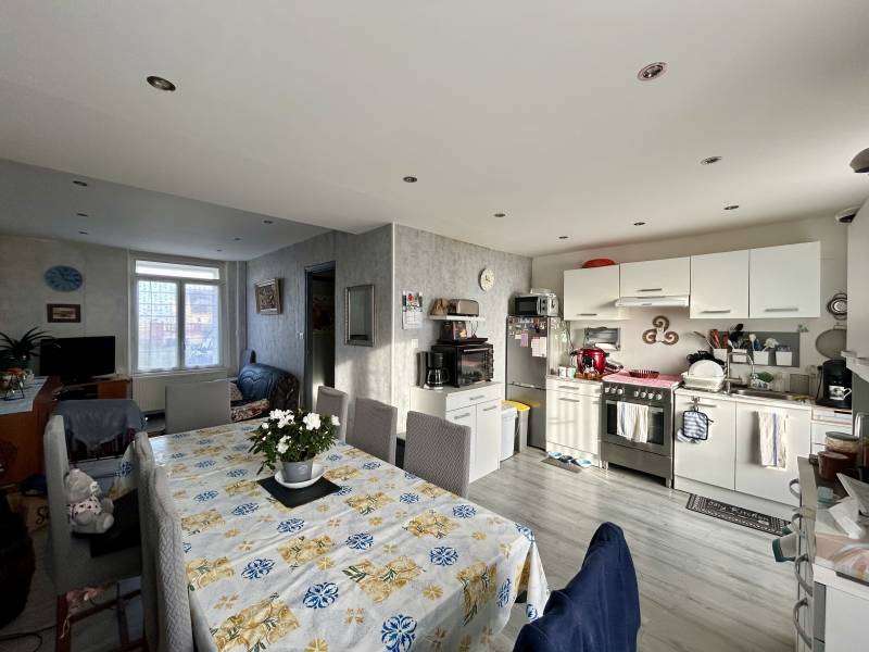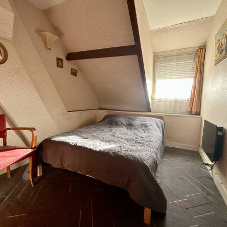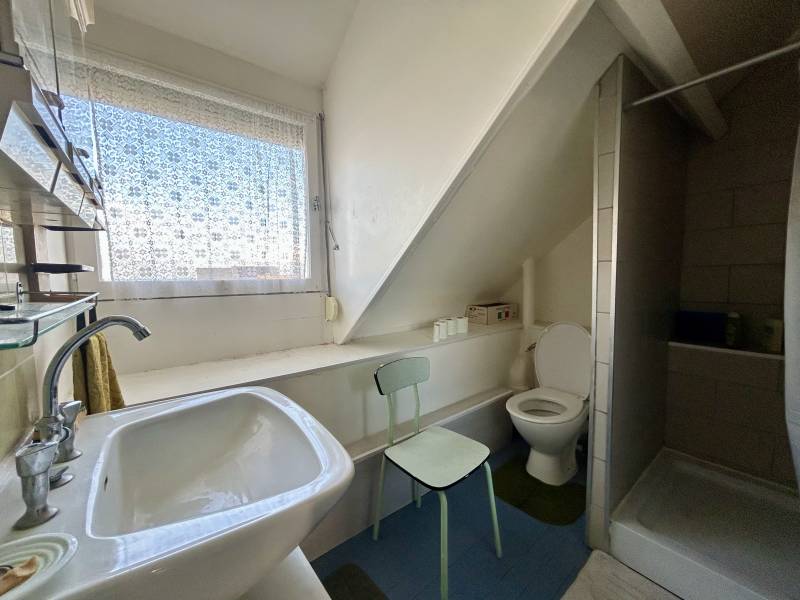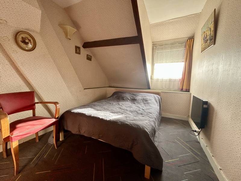 Au premier étage, un palier distribue un espace de vie, deux chambres et une salle d'eau avec wc, offrant de multiples possibilités d'aménagement ou de location.