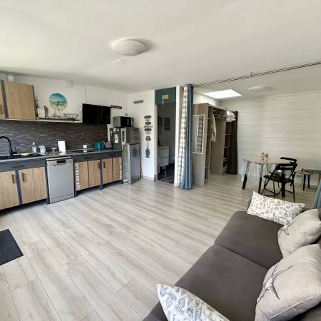 Elle se compose d'une pièce de vie lumineuse avec une cuisine aménagée et équipée, d'un espace nuit et d'une salle d'eau avec wc.