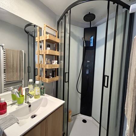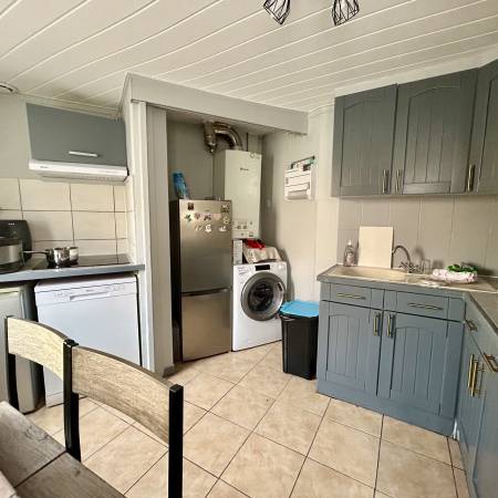 Au rez-de-chaussée, elle se compose d'une entrée ouvrant sur une pièce de vie lumineuse, d'une cuisine aménagée, d'une salle d'eau et d'un wc indépendant.